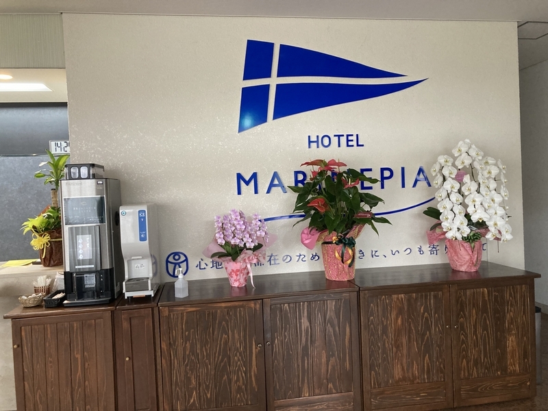 ホテルマリンピアは平成になる直前に開業したと町では言われており、昭和の名残が館内各所で見られる。かつては呉服の展示会やら、シティホテルらしい催し物をホテルの2階の宴会場でやっていたという話も聞いており、宴会も多かったようである。
