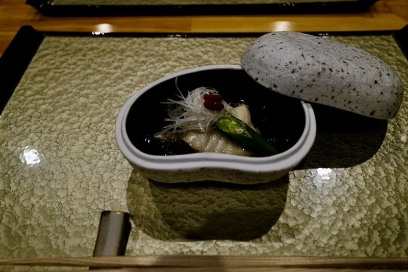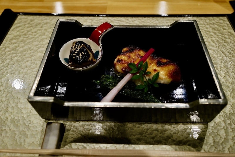 五島のクエ(アラ)であったり、品は時期によって異なる。長崎の修行先と同じ焼き台で、ふっくら仕上げられた焼き物。秋刀魚の時期が楽しみである。
